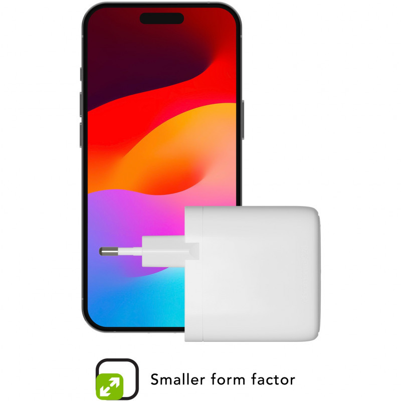 "dbramante1928 re-charge Pro - EU Wall Charger USB-C 65W - W. Charger type: Indoor, Power source type: AC, Charger compatibility: Universal. Input voltage: 110 - 240 V. USB Type-C ports quantity: 1. Product colour: White"\n"Unlike most chargers dbramante1928 chargers are made with 100% recycled plastic and is 100% recyclable.This 65-watt wall charger with USB-C connectors offers universal fast and safe charging for smartphones, tablets and some Laptops (mainly USB-C-PD-enabled, PPS and QC devices). Purposefully designed for travel, home or the office."