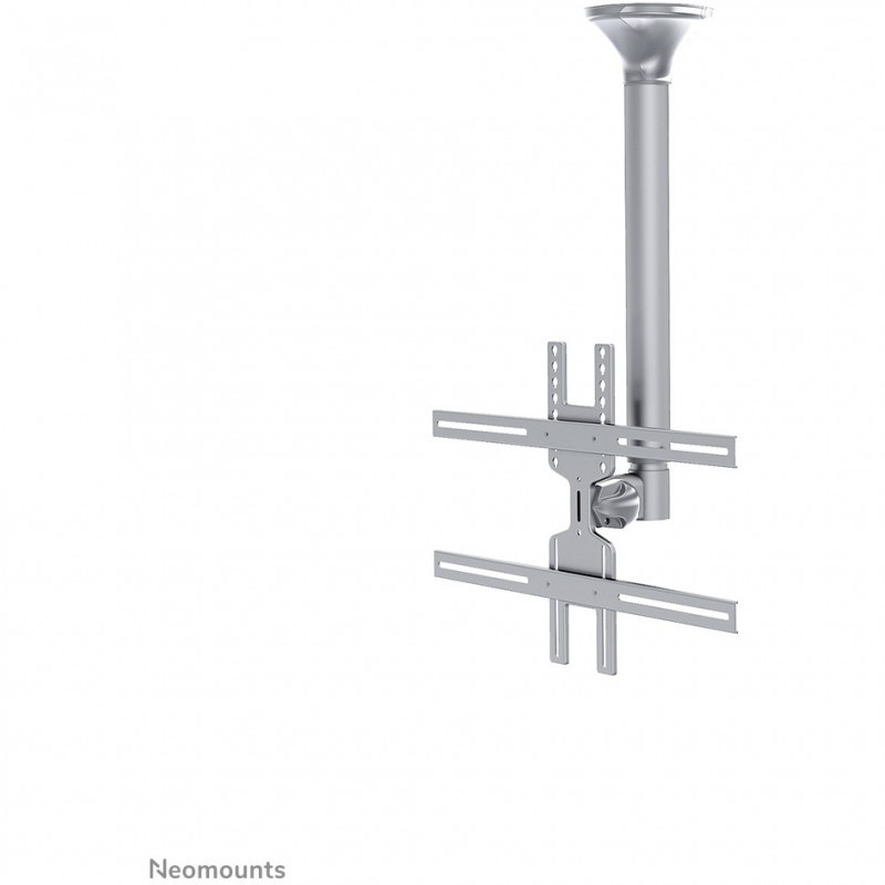 "Neomounts FPMA-C400SILVER Monitor/TV mount ceiling 32-60"" - h 64-104 cm. Maximum weight capacity: 35 kg, Minimum screen size: 81.3 cm (32""), Maximum screen size: 152.4 cm (60""), Minimum VESA mount: 200 x 200 mm, Maximum VESA mount: 600 x 400 mm. Height adjustment range: 640 - 1040 mm, Tilt angle range: 0 - 25°, Swivel angle: 60°. Product colour: Silver"\n"The Neomounts ceiling mount, model FPMA-C400SILVER is a tilt- and swivel ceiling mount for flat screens up to 60"". This mount is a great choice for space saving placement or when wall mounting and floor placement is not an option.