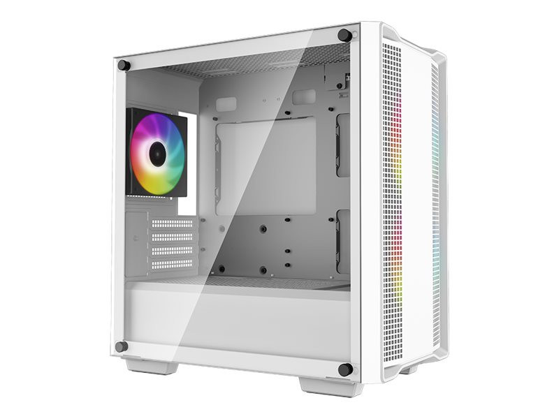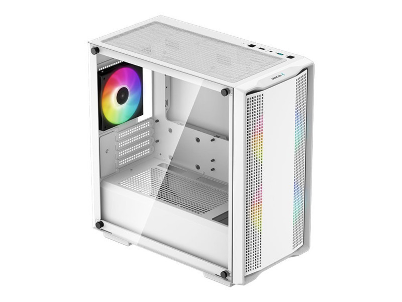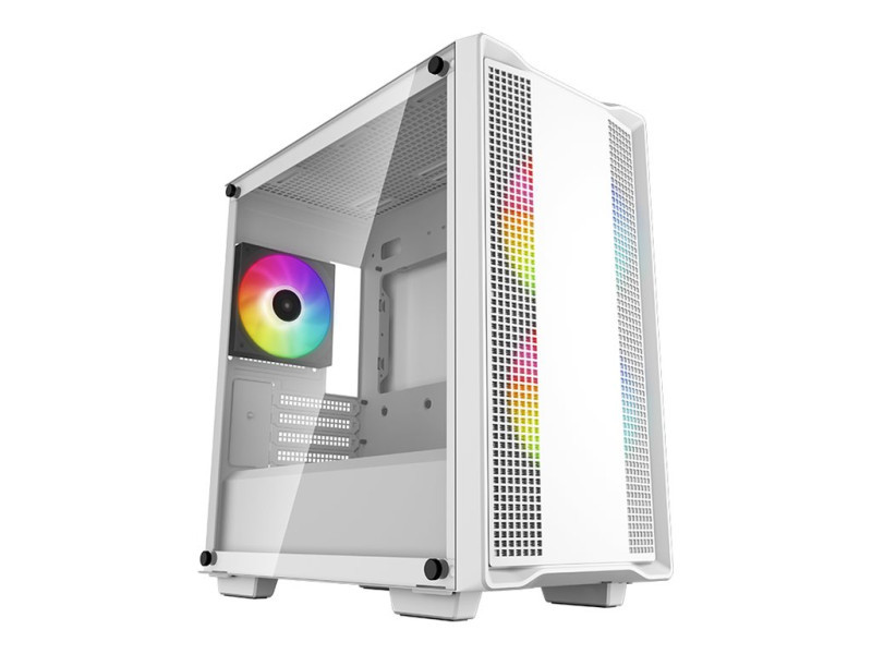 The DeepCool CC360 WH ARGB is an all-white Micro-ATX case that offers outstanding value with spacious component compatibility, a crystal-clear tempered glass window, and a total of three pre-installed ARGB fans that get any build started right |