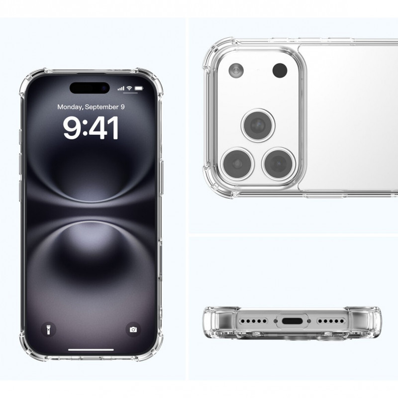 "4smarts Ibiza. Case type: Border, Brand compatibility: Apple, Compatibility: Apple iPhone 17 Pro Max, Maximum screen size: 17.5 cm (6.9""), Product colour: Transparent"\n
