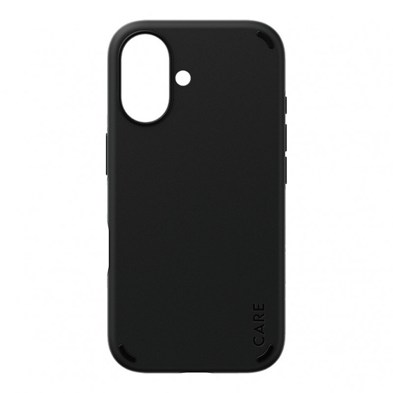 "PanzerGlass CARE™ by ® Double Defense Case Black iPhone 16. Case type: Cover, Brand compatibility: Apple, Compatibility: Apple - iPhone 16, Product colour: Black"\n"Double the defense, double the fun. This is the world’s first 100% recycled and recyclable phone case with high impact protection. Every angle and corner has been drop-tested at 2.4 meters. It’s light-weight two-piece construction offers a secure grip. The slim, stylish profile slides in and out of pockets with ease. This case also comes with wireless charging.