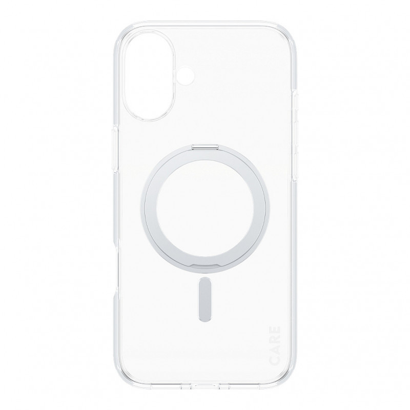 "PanzerGlass CARE™ by ® Case Transparent w. Silver Kickstand & MagSafe iPhone 16 Plus. Case type: Cover, Brand compatibility: Apple, Compatibility: Apple - iPhone 16 Plus, Product colour: Transparent"\n"One of our most anticipated new products is finally available! Every angle and corner has been drop-tested at 4.8 meters. Made from recycled plastic, this case offers phenomenal protection, wireless charging, and MagSafe compatibility, and includes our 1 Year Anti-Yellowing guarantee – no questions asked. This slim, light-weight protective kickstand case offers everything you want is a phone case. It’s practical design features a versatile kickstand for hands-free viewing, both vertical and horizontal. Now you – or your kids – can FaceTime, stream series, watch movies, and do yoga with ease, any where, any time … and hands free. It even includes enhanced camera protection to safeguard your selfies and photos.