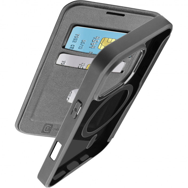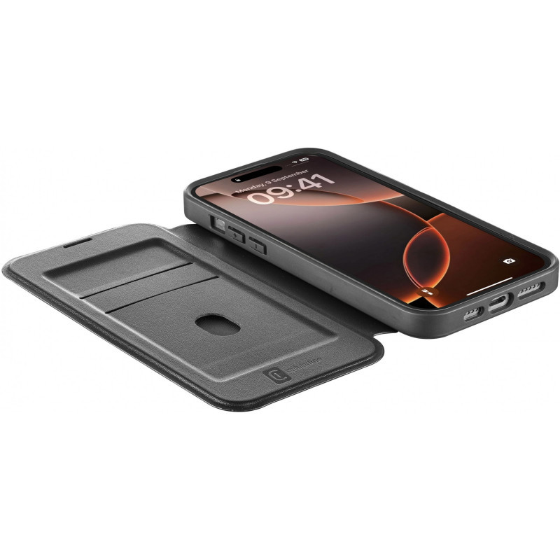 "Cellularline Daily Mag - iPhone 16 Pro Max Book cover with semi-transparent hard back compatible with Magsafe® ecosystem. Case type: Folio, Brand compatibility: Apple, Compatibility: iPhone 16 Pro Max, Maximum screen size: 17.5 cm (6.9""), Surface coloration: Monochromatic, Product colour: Black, Number of card pockets: 2"\n"DAILY MAG is the book-style case compatible with the MagSafe® ecosystem. Its semi-transparent, scratch-resistant back allows you to see the true design of the iPhone, while the front flap protects the display and hides the magnets, making the opening and closing of the case simple and practical. Additionally, the raised edges in the camera area provide extra protection against accidental drops, keeping your iPhone always safe."