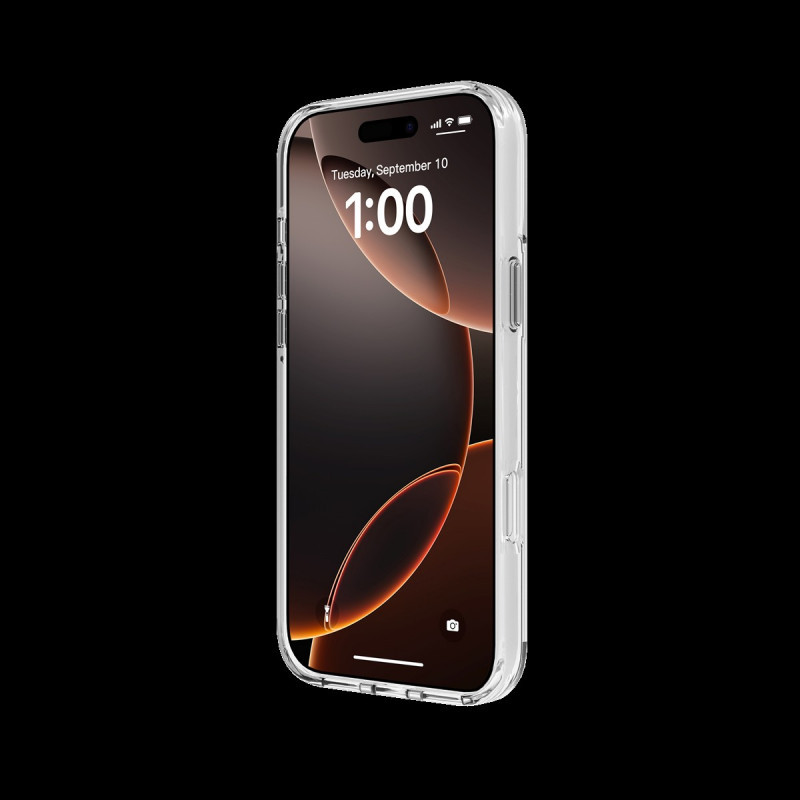 Dėklas turi integruotą MagSafe magnetų sistemą, kuri leidžia patogiai naudoti belaidį įkrovimą ir magnetinius aksesuarus be dėklo nuėmimo. Skaidri konstrukcija padeda apsaugoti telefoną nuo įbrėžimų, smulkių smūgių ir kasdienio nusidėvėjimo.