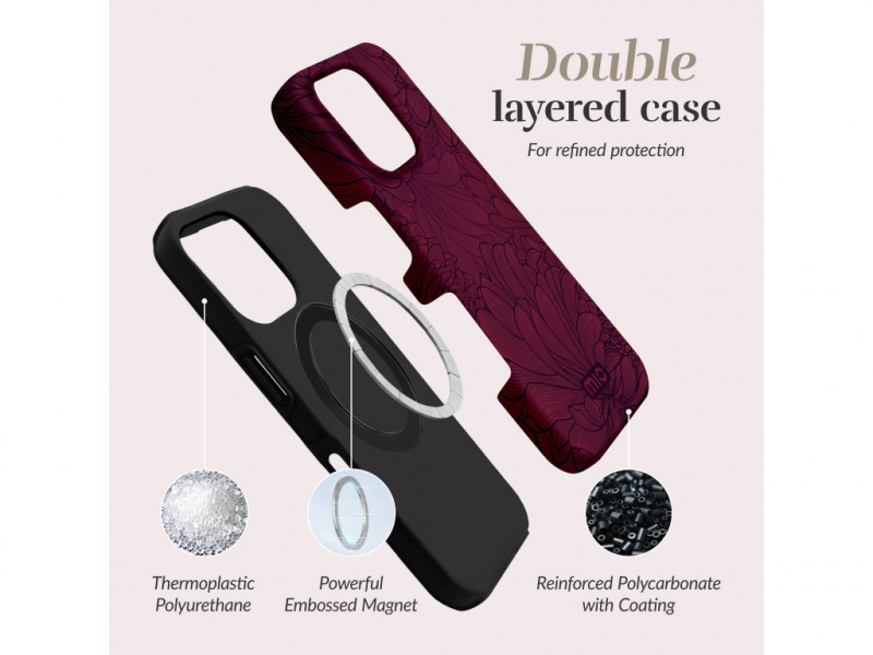 MIO Berry Blooms – MagSafe suderinamas apsauginis dėklas, skirtas iPhone 17 Pro Max. Dėklas apsaugo telefoną nuo įbrėžimų, smūgių ir kasdienio nusidėvėjimo, o ryškus „Berry Blooms“ gėlių raštas suteikia stilingą ir išraiškingą išvaizdą. MagSafe suderinamumas leidžia patikimai ir greitai prijungti MagSafe belaidžio įkrovimo įrankius bei kitus magnetinius priedus. Plonas ir lengvas dizainas puikiai priglunda prie telefono, išlaikydamas jo profilį ir funkcionalumą.
