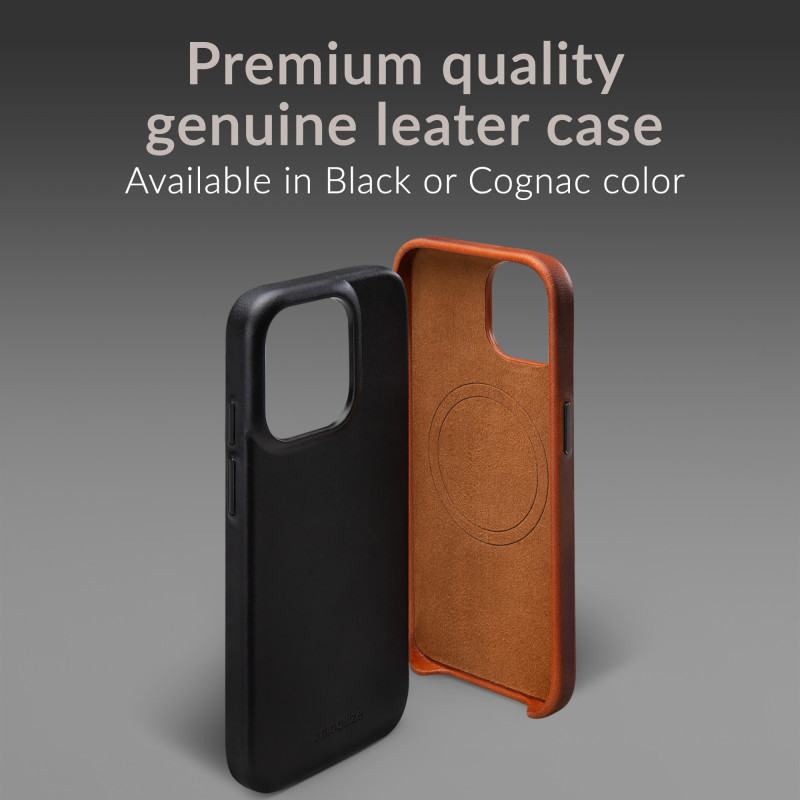 Mobilize MagSafe Compatible Premium Leather Case – tai premium odinis nugarėlės tipo dėklas, skirtas iPhone 17 Pro modeliui. „Burned Cognac“ spalva suteikia šiltą, klasikinį rudai oranžinį atspalvį, kuris laikui bėgant dar labiau įgauna natūralų odos charakterį.