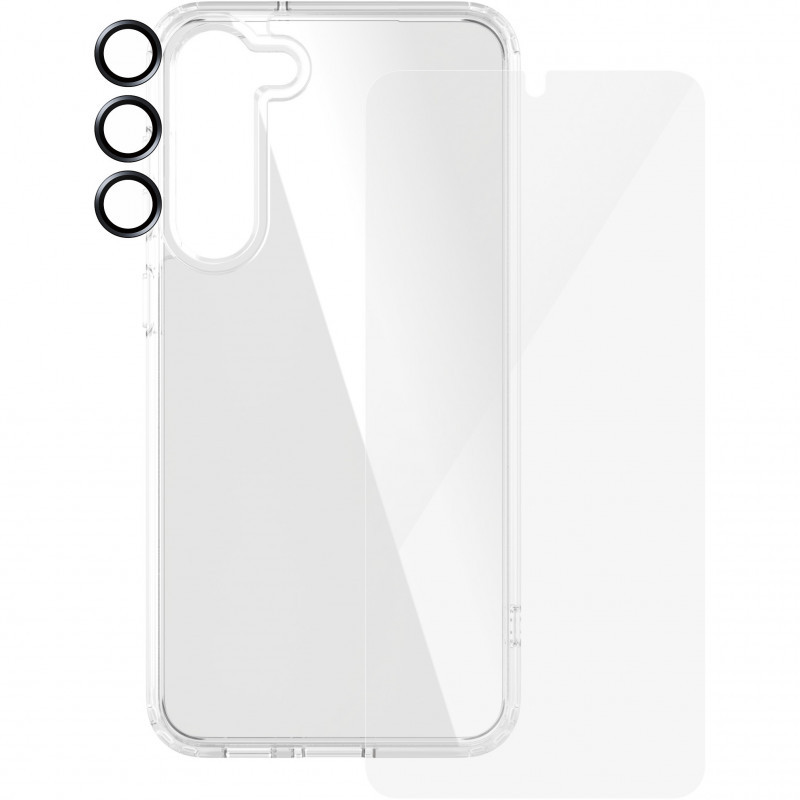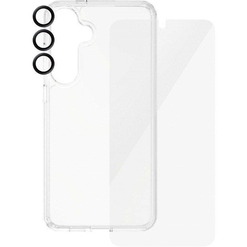 "PanzerGlass ® 3-in-1 Bundle Samsung Galaxy S24+ | Ultra-Wide Fit w. EasyAligner. Brand compatibility: Samsung, Compatibility: Samsung - Galaxy S24 Plus. Dry application. Protection features: Scratch resistant, Shock resistant. Material: Tempered glass, Polyethylene terephthalate (PET), Silicone, Product colour: Transparent. Quantity per pack: 1 pc(s)"\n"Want to protect your phone? I mean REALLY protect your phone? Then this 3-in-1 protection pack from PanzerGlass® is for you! Featuring a PicturePerfect Camera Lens Protector, a wireless charging compatible HardCase and an Ultra-Wide Fit Screen Protector, this pack keeps your phone safe from scratch-creating bumps against sharp-edged corners, phone-cracking falls onto stone-hard pavements and just about anything else life might throw at you. The screen protector even has a smudge-free coating that reduces traces of fingerprints and grease