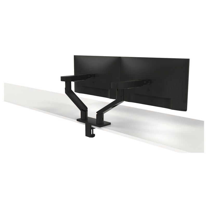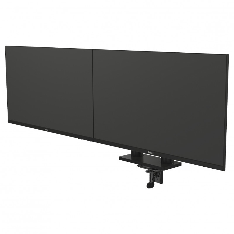 "DELL Dual Monitor Arm – MDA20. Maximum weight capacity: 10 kg, Minimum screen size: 48.3 cm (19""), Maximum screen size: 68.6 cm (27""). Height adjustment, Tilt angle range: -35 - 80°. Product colour: Black"\n"Get maximum productivity with this Dell Dual Monitor Arm – MDA20. Dell Quick Release allows your Dell UltraSharp and P-series monitors to be snapped onto the arms tool-free, while the counterbalance indicator on the arm offers easy replication across identical monitors ensuring rapid deployment across busy workspaces. Select Dell systems can be conveniently mounted behind the monitors for a neat and clutter-free desk. The cable management slot and clips let you route up to 10 cables to ensure wires are hidden away."