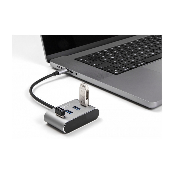 Due to its small dimensions and its sturdy housing, this Delock Hub is particularly suitable for travelling. It can simply be packed into the bag together with the laptop or tablet and used as needed."