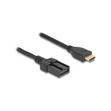 "DeLOCK HDMI Automotive cable HDMI-A male to HDMI-E male 3 m 4K 60 Hz. Cable length: 3 m, Connector 1: HDMI Type A (Standard), Connector 1 gender: Male, Connector 2: HDMI Type E, Connector 2 gender: Male, Connector contacts plating: Gold, Data transfer rate: 10.2 Gbit/s, Product colour: Black"\n"This HDMI cable by Delock is used to connect a display with HDMI-E automotive connector to the multimedia system of a vehicle. Video and audio signals are transmitted.