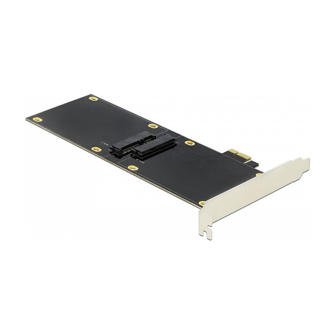 "DeLOCK Riser Card M.2 Key M Extension NVMe with 20 cm cable. Host interface: M.2, Output interface: M.2. Product colour: Black, Maximum cable length: 0.2 m, Country of origin: China. Cables included: SATA"\n"This riser card by Delock can be used to attach and connect an M.2 SSD to an optimal position in the case. The flexible cable allows a space-saving installation inside the computer case."