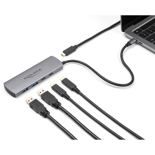 DELOCK USB 10 Gbps 2 Port USB Typ-A + 2 Port USB Type-C Hub mit USB Type-C Anschluss und zustzlicher Strombuchse