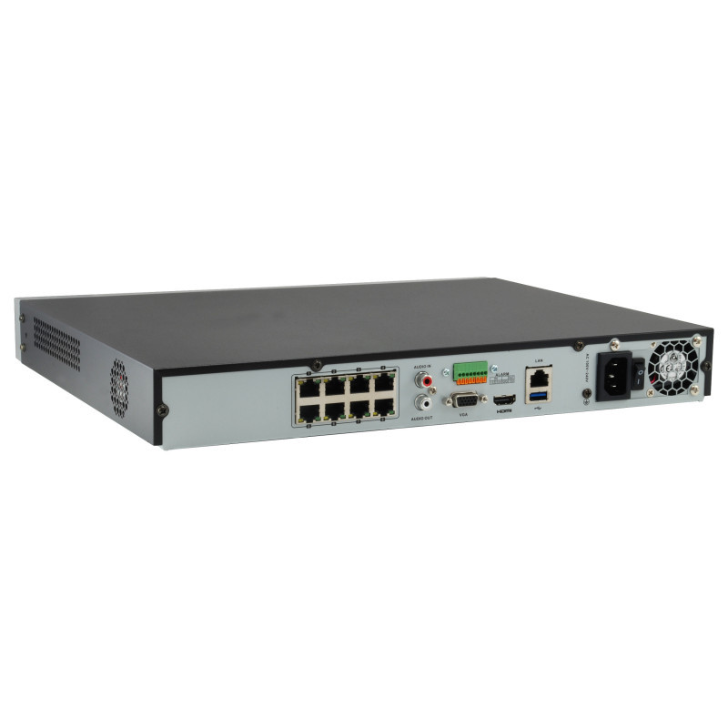 An integrated 8-port 802.3at PoE switch enables the NVR to run both power and data on the one cable to power up connected PoE cameras.