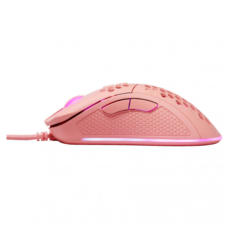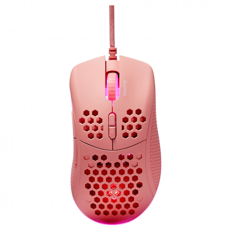 "Deltaco Gaming GAM-108-P. Connectivity technology: Wired, Device interface: USB, Keyboard number of keys: 7. Backlight type: RGB LED. Cable length: 1.8 m. Product colour: Pink"\n"Our first ultralight gaming mouse from our pink line PM75 gives you everything you need in a gaming mouse. Amazing RGB, ultra light weight and rubber coated side grips for that ultra control even in pressured situations. The 6 different DPI modes can be alternated via the top button while the button below helps with LED lighting.