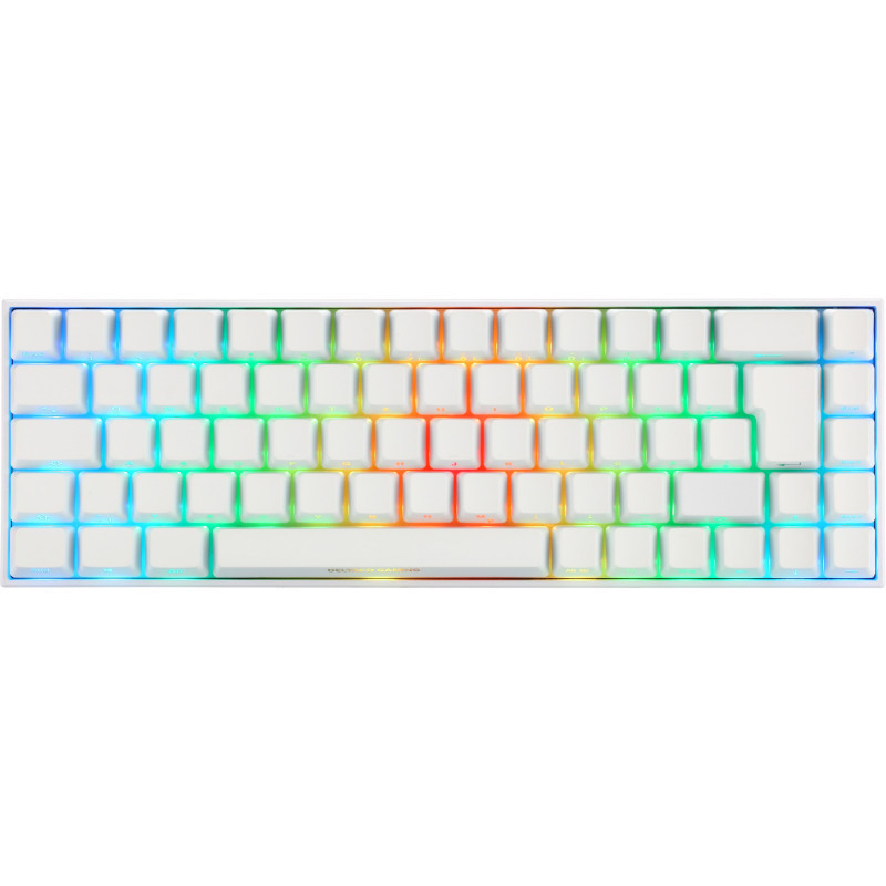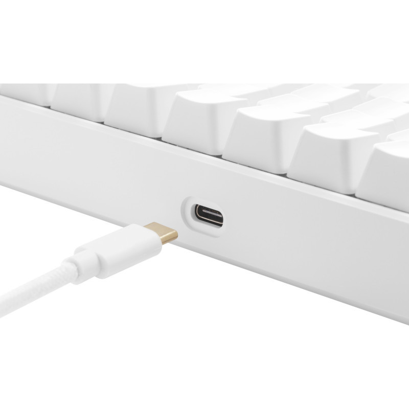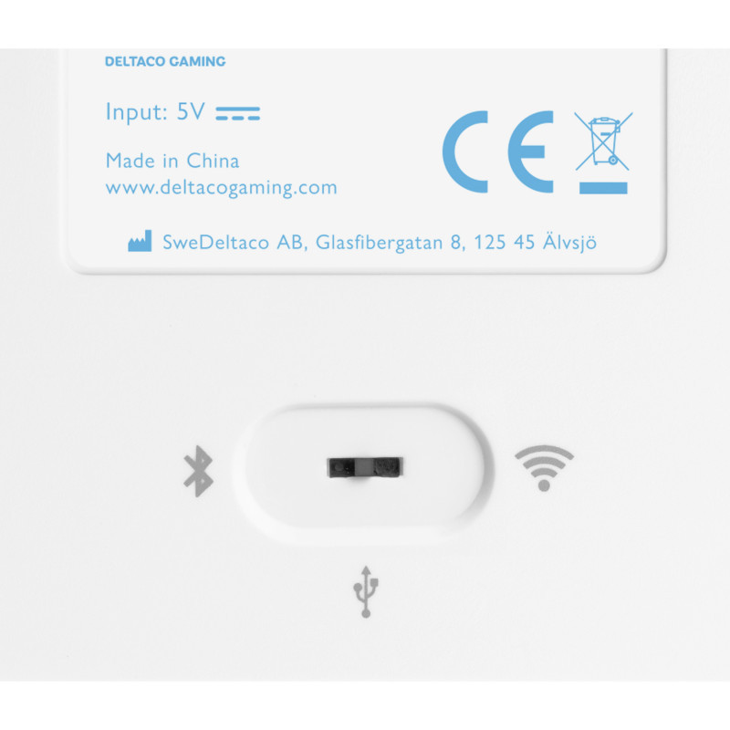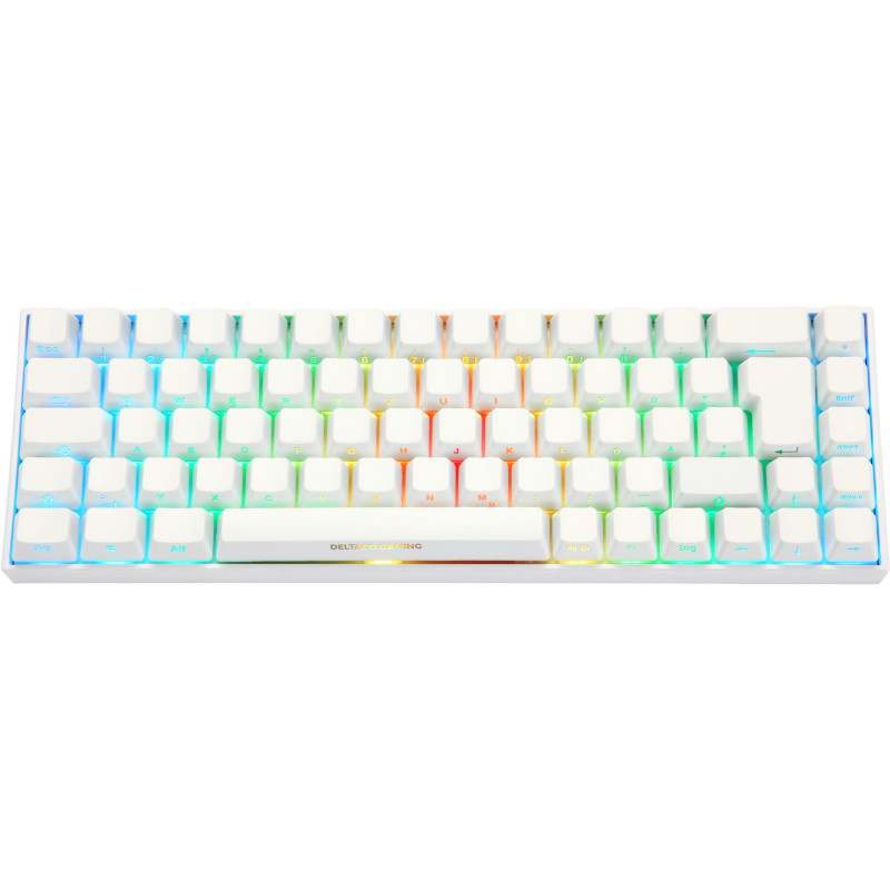 "Deltaco Gaming GAM-100-W-DE. Keyboard form factor: 65%. Keyboard style: Straight. Connectivity technology: Wired & Wireless, Device interface: USB + RF Wireless + Bluetooth, Keyboard key switch: Mechanical, Keyboard layout: QWERTZ, Keyboard number of keys: 68. Backlight type: RGB LED. Cable length: 1.8 m. Recommended usage: Gaming. Product colour: White"\n"DELTACO GAMING WK95R Wireless 65% keyboard, front lasered keys, RGB, Kailh Red, N-key rollover, German Layout, white/RGB