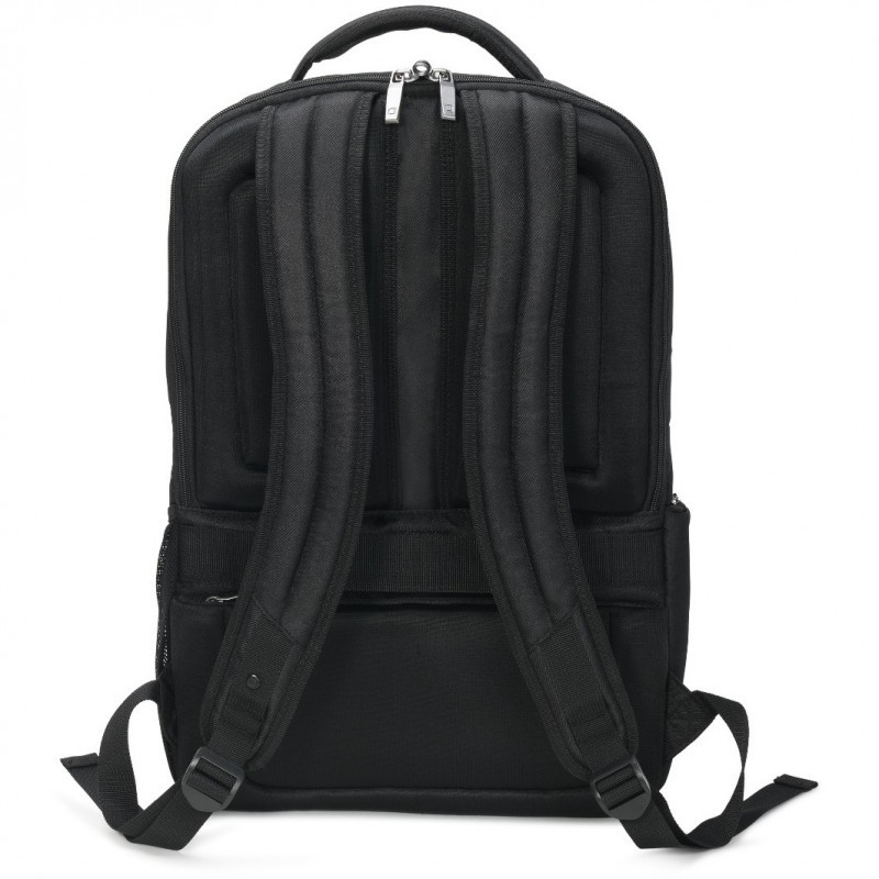 "DICOTA Eco Backpack SELECT 15-17.3. Product main colour: Black, Style: City, Coloration: Monochromatic. Width: 200 mm, Depth: 340 mm, Height: 480 mm. Material: Ethylene-vinyl acetate (EVA) foam, Polyethylene terephthalate (PET)"\n"This sustainable backpack has an integrated rain cover as well as many features and plenty of storage space all at a low weight.