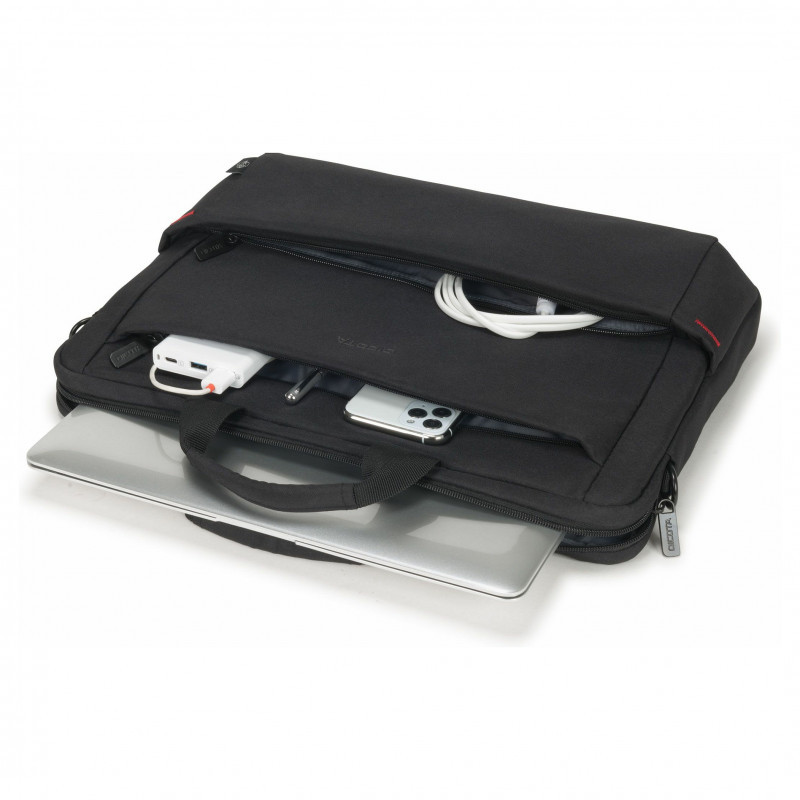 "DICOTA Eco Slim Case Plus BASE. Maximum screen size: 39.6 cm (15.6""), Carrying handle(s), Shoulder strap. Weight: 400 g. Surface coloration: Monochromatic"\n"Today's actions shape tomorrow's world. Which is why, here at DICOTA, we are dedicated to developing environmentally friendly solutions and therefore make all the items in our ECO collections out of sustainable, recycled PET. We reuse up to 19 PET bottles, so you will receive an environmentally friendly product with a life-long guarantee. Our PET products also have the quality, look and finish that you know and love.