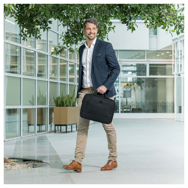 "DICOTA Eco Top Traveller BASE. Case type: Toploader bag, Maximum screen size: 35.8 cm (14.1""), Carrying handle(s), Shoulder strap. Weight: 750 g. Surface coloration: Monochromatic"\n"Today's actions shape tomorrow's world. Which is why, here at DICOTA, we are dedicated to developing environmentally friendly solutions and therefore make all the items in our ECO collections out of sustainable, recycled PET. We reuse up to 19 PET bottles, so you will receive an environmentally friendly product with a life-long guarantee. Our PET products also have the quality, look and finish that you know and love.