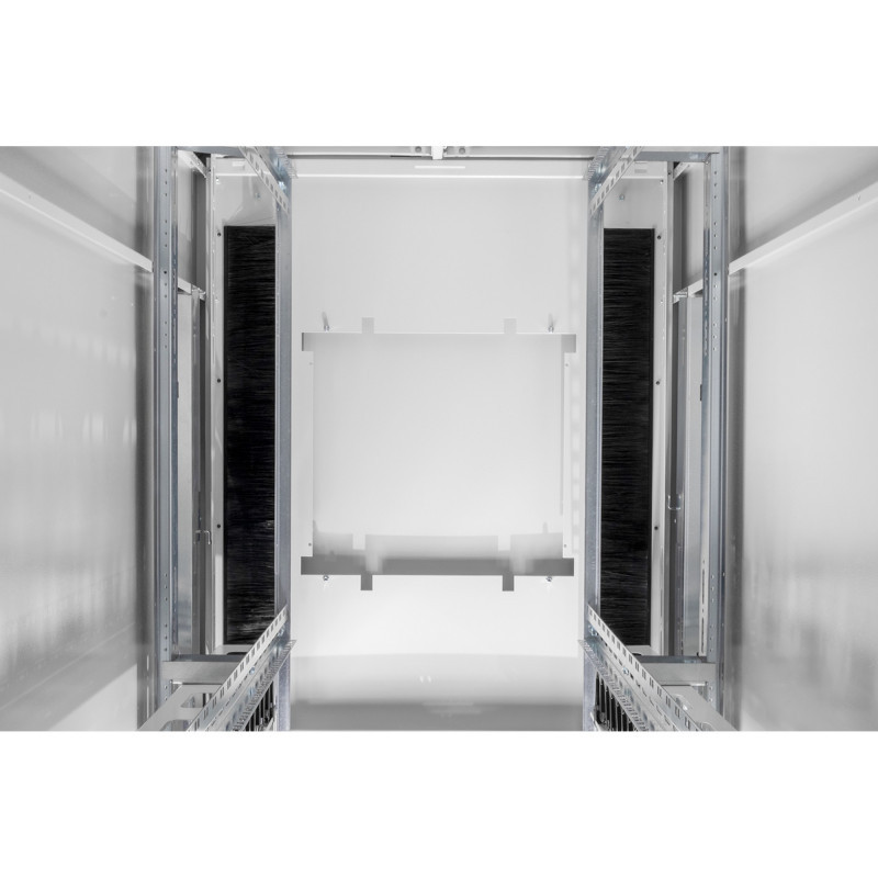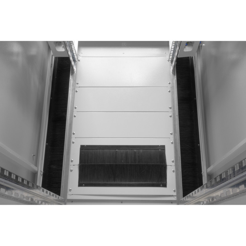 - Generously dimensioned vertical cable channels with cable routing and trim panel built into the front panel