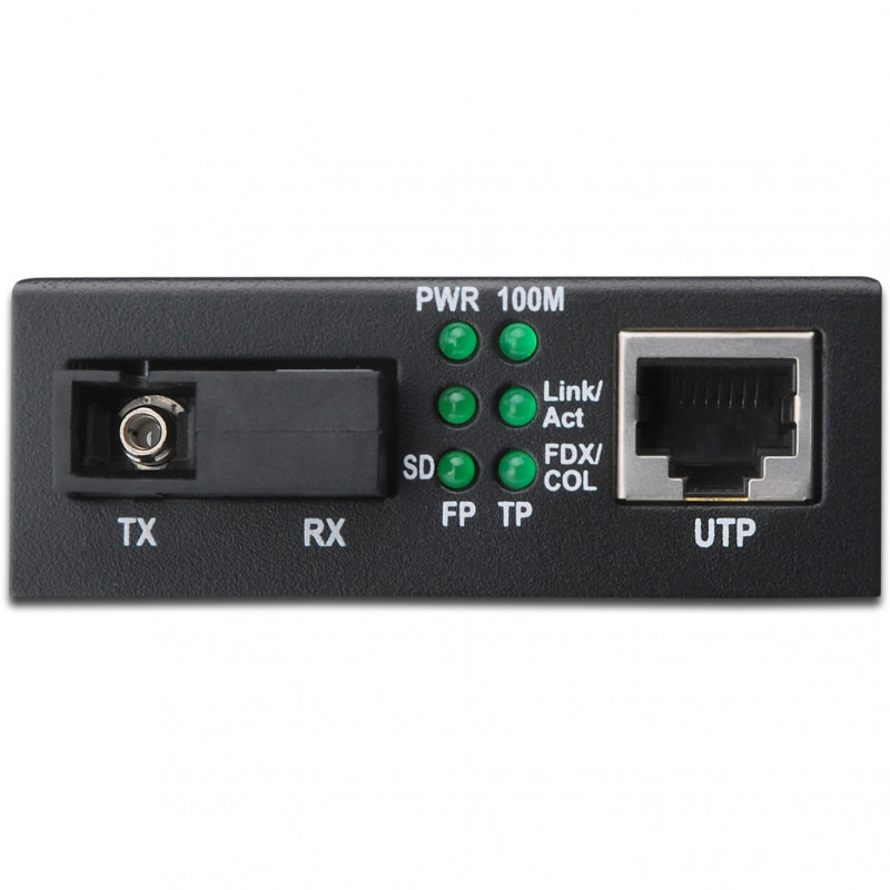"Digitus Bidirectional Gigabit Media Converter, RJ45 / SC. Maximum data transfer rate: 1000 Mbit/s, Converter input interface: 10Base-T, 100Base-TX, 1000Base-TX, Converter output interface: 1000Base-LX. Maximum transfer distance: 20000 m, Wavelength: 1310 nm, Fiber mode structure: Single-mode. LED indicators: Link, Power, Status, Product colour: Black. Fiber optic connector: SC, Connectivity technology: Wired. Output voltage: 5 V, Output current: 0.8 A, Power consumption (typical): 2.5 W"\n"The perfect converter solution for various fiber media