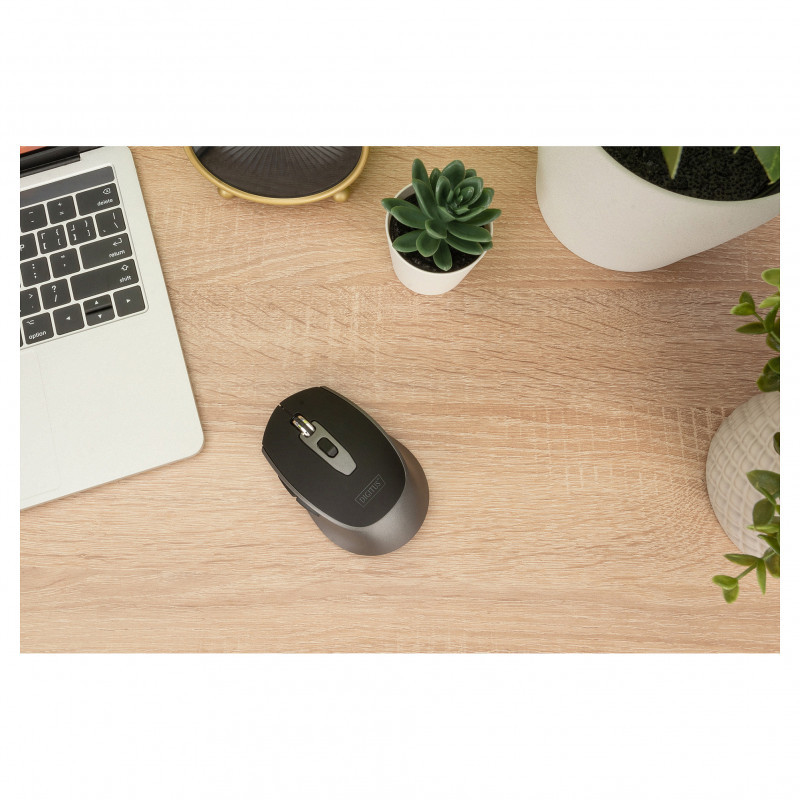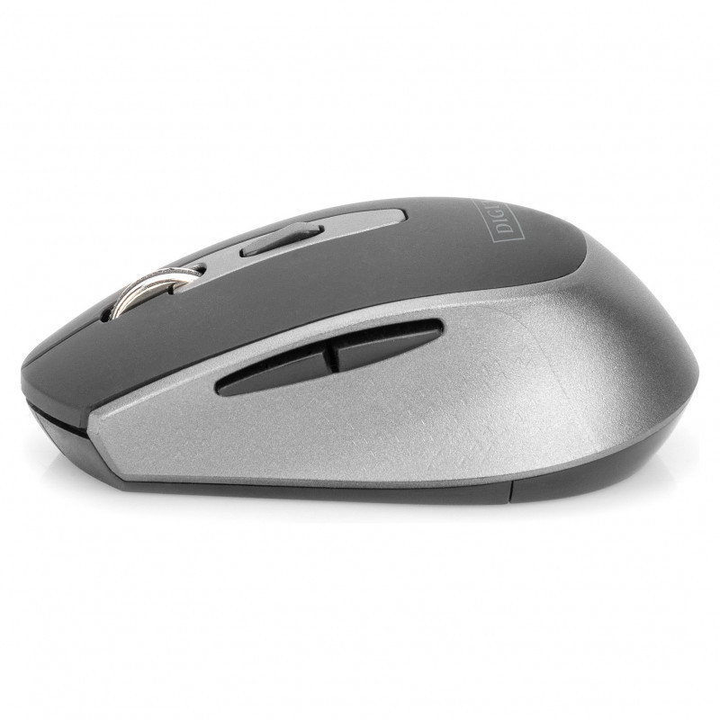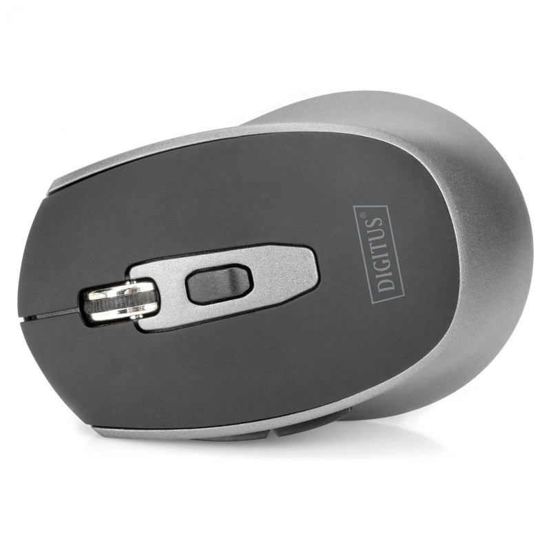 "Digitus Wireless Optical Mouse, 6 buttons, 1600 dpi. Form factor: Ambidextrous. Movement detection technology: Optical, Device interface: RF Wireless, Movement resolution: 1600 DPI, Buttons type: Pressed buttons, Buttons quantity: 6, Scroll type: Wheel. Power source: Batteries. Product colour: Black, Grey"\n"Comfortable and reliable control for your workplace