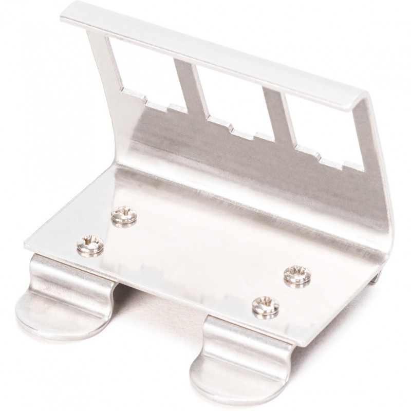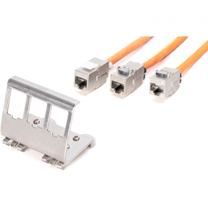 "Digitus DIN rail adapter for 3x Keystone module. Product type: Adapter, Material: Stainless steel, Product colour: Metallic. Package width: 90 mm, Package depth: 80 mm, Package height: 50 mm. Quantity per pack: 1 pc(s)"\n"- Compact and space-saving design: The slim and compact shape of this DIN rail adapter maximizes space utilization without compromising performance.