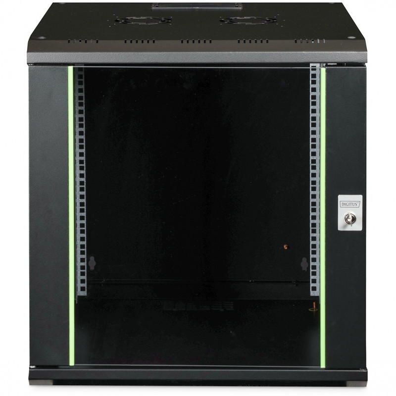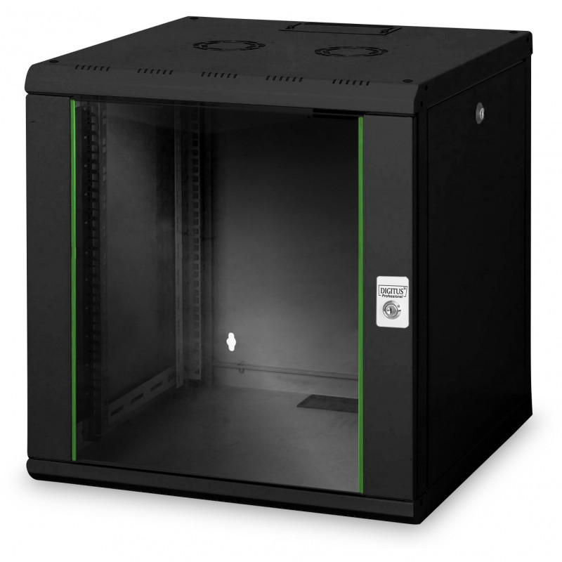 "Digitus Wall Mounting Cabinet Unique Series - 600x600 mm (WxD). Type: Wall mounted rack, Rack capacity: 12U, Maximum weight capacity: 100 kg, Key lock, Rack rails, International Protection (IP) code: IP20, Product colour: Black"\n"The DIGITUS® Unique Series is made for high demand IT-Infrastructure Solutions - designed and developed on highest standard in Germany