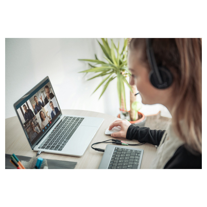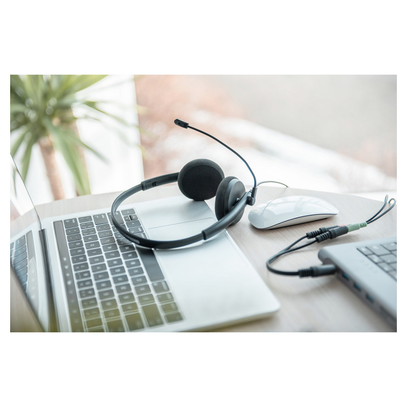 The on-ear headset from DIGITUS® offers optimal voice quality. Noise reduction lowers the disruptive environmental noise on the microphone so you can concentrate fully on your call. With two jack connections, the headset can be used either as a headset or as normal earphones. With the optional headset adapter (AK-510301-002-S), the headset can also be used on a combination jack (4-pole). Thanks to the adjustable headband, it can easily be adjusted to any head size for optimal wearing comfort. The microphone can be rotated by 300° to configure the headset for use on the right or left side. The foam cushion on the earpiece ensures wearing comfort so you can even enjoy longer phone conferences. Ideal for use in offices or at home, for phone conferences or web seminars."