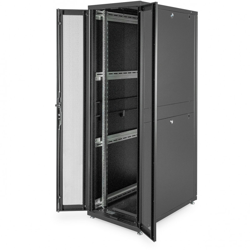 "Digitus Server Rack Unique Series - 600x1000 mm (WxD). Type: Freestanding rack, Rack capacity: 42U, Maximum weight capacity: 1000 kg, International Protection (IP) code: IP20, Product colour: Black"\n"The DIGITUS® Unique Series is made for high demand IT-Infrastructure Solutions - designed and developed on highest standard in Germany