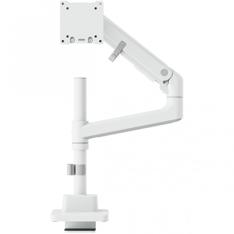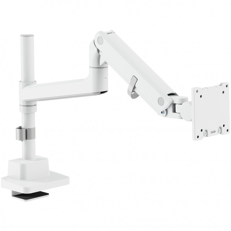 "Digitus Single Monitor Mount, 57"", 27 kg. Mounting: Clamp, Maximum weight capacity: 27 kg, Maximum screen size: 144.8 cm (57""), Minimum VESA mount: 75 x 75 mm, Maximum VESA mount: 100 x 100 mm. Height adjustment, Tilt angle range: -75 - 75°. Product colour: White"\n"Fully mobile table mount for screens up to 57"" with a maximum weight capacity of 27 kg - suitable for flat screens as well as curved displays
