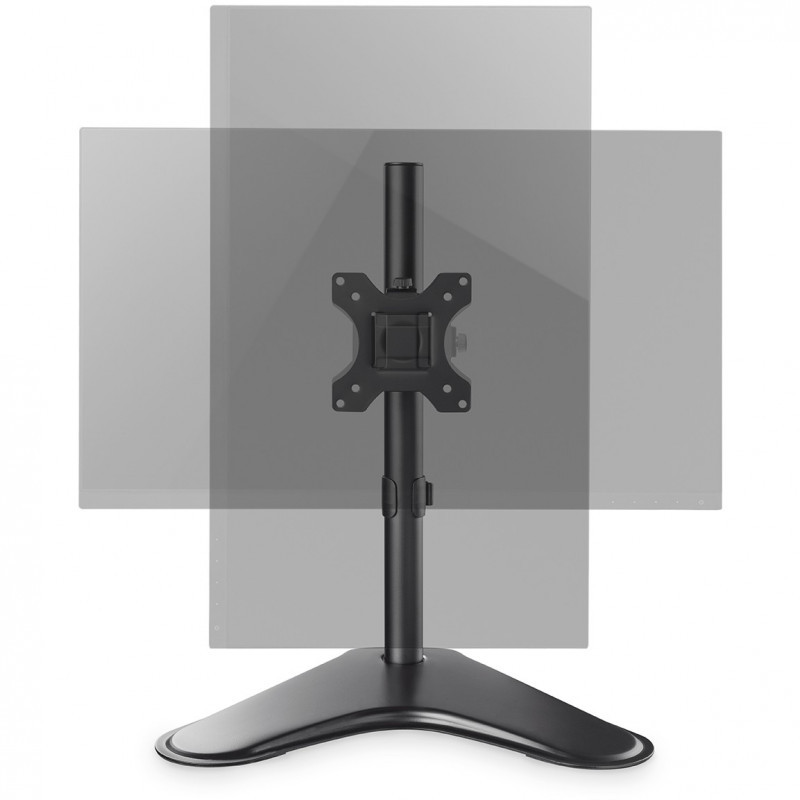 "Digitus Single monitor stand, 23"", 8 kg. Mounting: Freestanding, Maximum weight capacity: 8 kg, Minimum screen size: 43.2 cm (17""), Maximum screen size: 81.3 cm (32""), Minimum VESA mount: 75 x 75 mm, Maximum VESA mount: 100 x 100 mm. Height adjustment, Swivel angle range: -90 - 90°, Tilt angle range: -45 - 45°. Product colour: Black"\n"Universal monitor stand for flexible positioning and alignment of your monitor (32"" / 8 kg max.) at the workstation