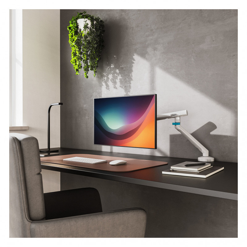The fully mobile single monitor mount is the ideal solution for modern workstations where flexibility, ergonomics and organization are paramount. Designed for screens up to 35 inches and with a load capacity of up to 10 kg, this mount is equally suitable for flat and curved monitors. Thanks to the integrated spring tensioning mechanism, the monitor can be infinitely adjusted to the respective weight without tools - for perfect balance and effortless adjustment in any position. The mount offers maximum mobility: rotating, tilting, swiveling and height adjustment allow the monitor to be ergonomically aligned according to individual requirements. The practical VESA quick-release function allows the screen to be attached or removed quickly and easily, while the quick-release coupling makes installing the mount particularly straightforward. With its space-saving design and integrated cable management, the monitor mount not only ensures a tidy appearance, but also maximizes the usable work surface. Two mounting options - table clamp or grommet - offer additional mounting flexibility. The mount is compatible with VESA standards 75x75 and 100x100 and is therefore versatile."