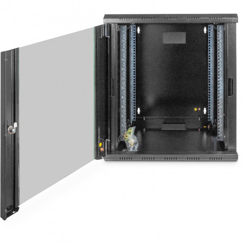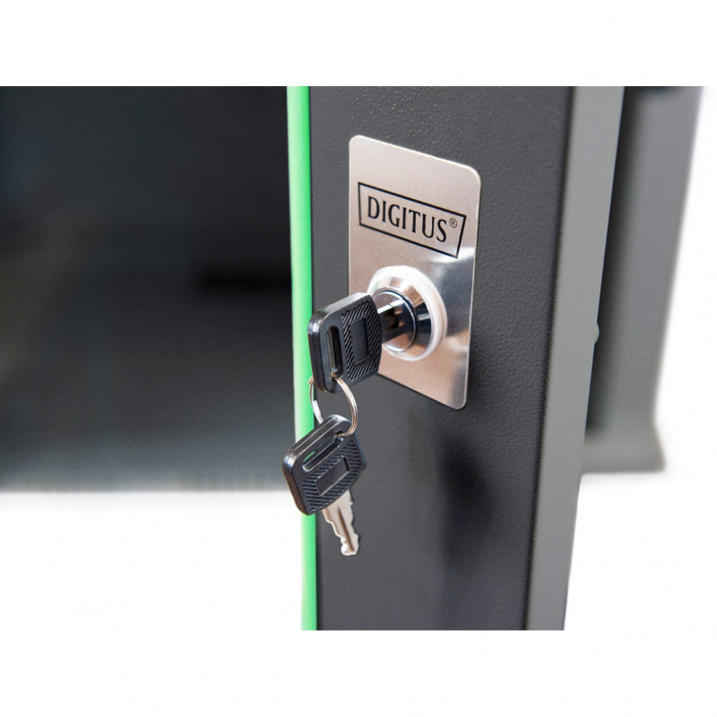 "Digitus Wall Mounting Cabinet Unique Series - 600x450 mm (WxD). Type: Wall mounted rack, Rack capacity: 12U, Maximum weight capacity: 100 kg, Key lock, International Protection (IP) code: IP20, Product colour: Black"\n"The DIGITUS® Unique Series is made for high demand IT-Infrastructure Solutions - designed and developed on highest standard in Germany