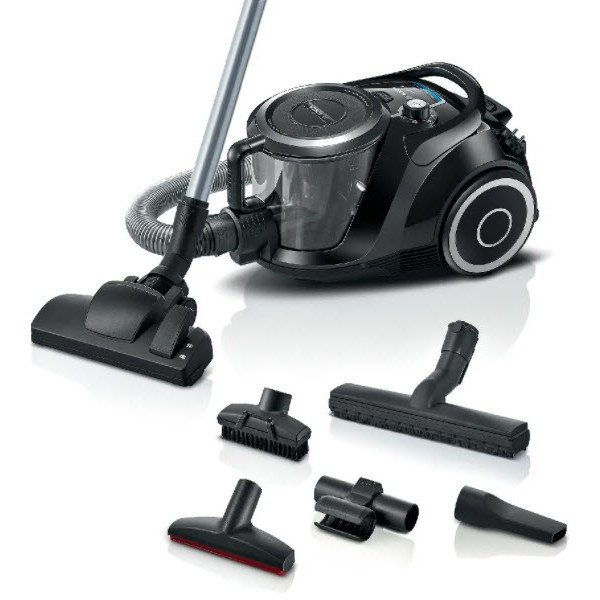 "Bosch Serie 6 BGC41XSIL. Maximum input power: 700 W. Type: Cylinder vacuum, Cleaning type: Dry, Dust container type: Bagless, Dust capacity: 2.4 L. Vacuum air filtering: Allergy filter, Dirt separating method: Filtering, Noise level: 68 dB. Product colour: Black"\n