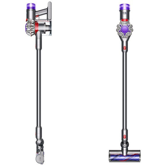"Dyson V8 Advanced. Product type: 2-in-1 stick vacuum, Dust container type: Bagless, Product colour: Nickel, Silver. Cleaning type: Dry, Dirt separating method: Cyclonic, Cleaning surfaces: Carpet, Hard floor, Wooden floor. Power source: Battery, Motor power: 425 W, Runtime: 40 min. Package width: 271 mm, Package depth: 739 mm, Package height: 154 mm. Width: 250 mm, Depth: 221 mm, Height: 1256 mm"\n