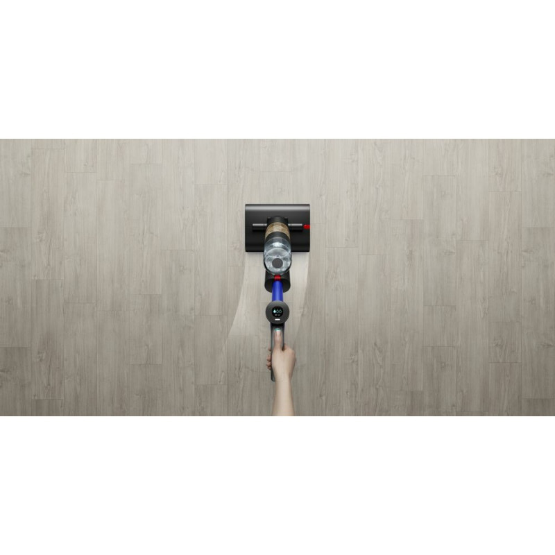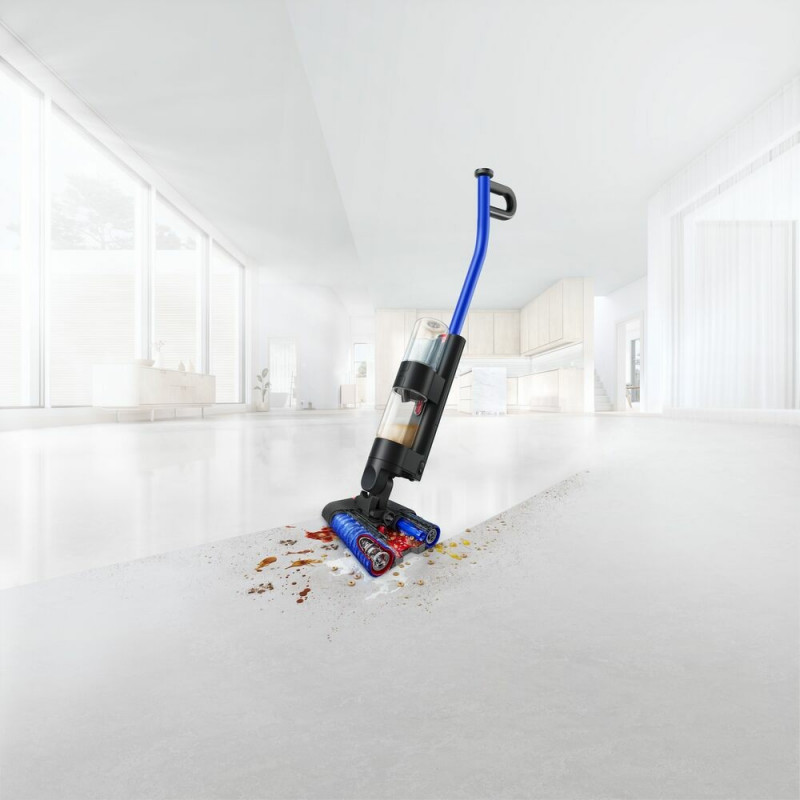 "Dyson Wash G1. Product type: Stick vacuum, Dust container type: Bagless, Product colour: Black, Blue. Cleaning type: Wet, Cleaning surfaces: Hard floor, Tile, Display type: LCD. Power source: Battery, Runtime: 35 min, Runtime with motorized brush (medium speed): 20 min. Package width: 755 mm, Package depth: 312 mm, Package height: 210 mm. Width: 225 mm, Depth: 300 mm, Height: 1140 mm"\n"Powerful floor washing