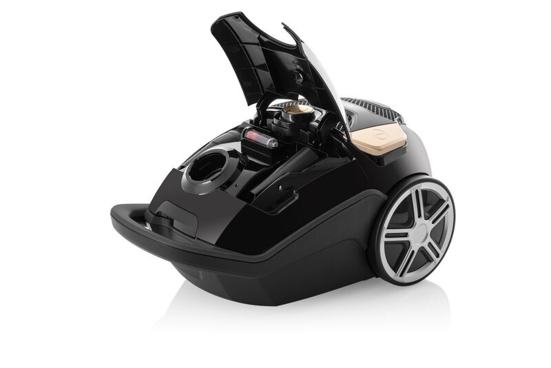 360° swivel wheels for easy turning, automatic power cable winding, soft wheels for protecting hard floors and furniture, 2x parking positions for floor nozzle, attachment diameter of accessories: 35mm, accessories: universal floor nozzle with retractable brush, turbo brush, small turbo brush, animal collection nozzle hair, crevice and upholstery nozzles brush, metal telescopic tube (90cm), dust bag (ETA HYGIENIC) |