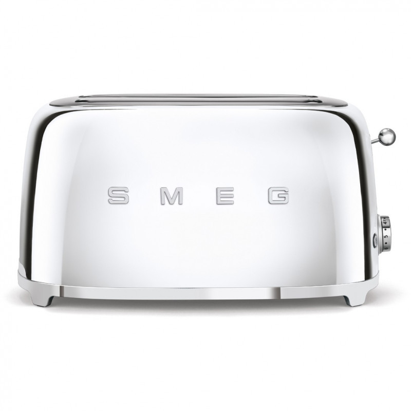 "Smeg 50's Style Toaster TSF02SSEU Steel. Number of slices: 4 slice(s), Product colour: Chrome, Housing material: Steel. Power: 1500 W, AC input voltage: 220 - 240 V, AC input frequency: 50 - 60 Hz. Cord length: 1 m, Width: 394 mm, Depth: 208 mm. Country of origin: China. Pallet gross weight: 260.2 kg, Layers per pallet: 7 pc(s), Products per pallet layer: 7 pc(s)"\n"Smeg's iconic retro design offers a pop of colour and a premium enamelled finish. Smeg's TSF02 features two long extra wide bread slots which can accommodate a variety of bread thicknesses including toasting baguettes, thick farmhouse loafs and artisan breads. Each slot features a self-centering rack to ensure even toasting and once the selected toasting time has finished, the slices pop up automatically.