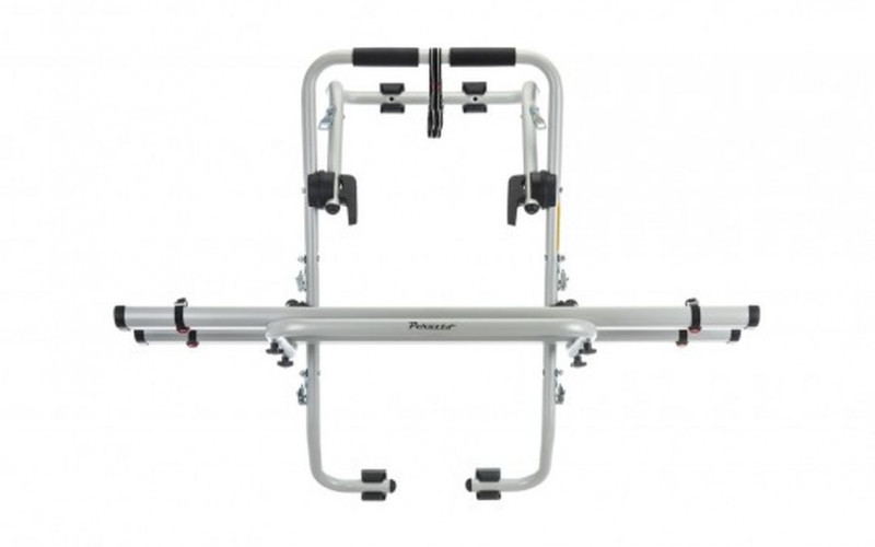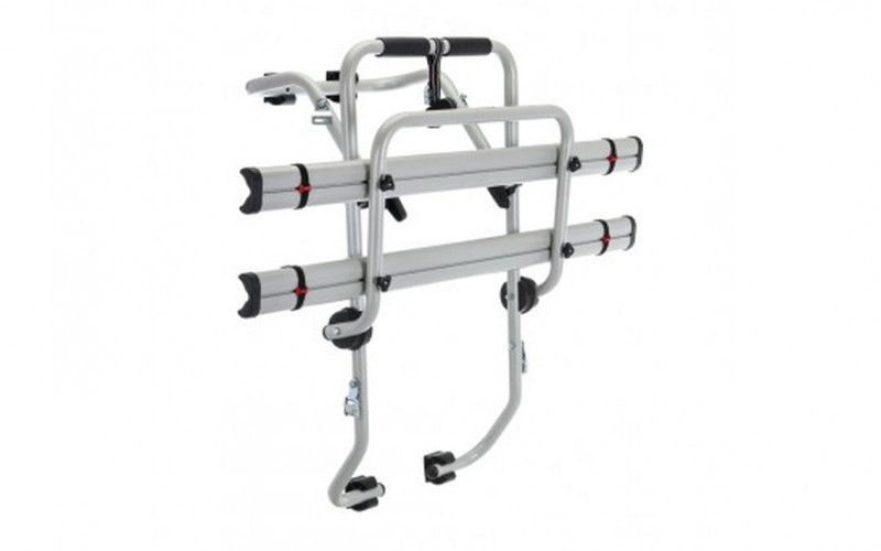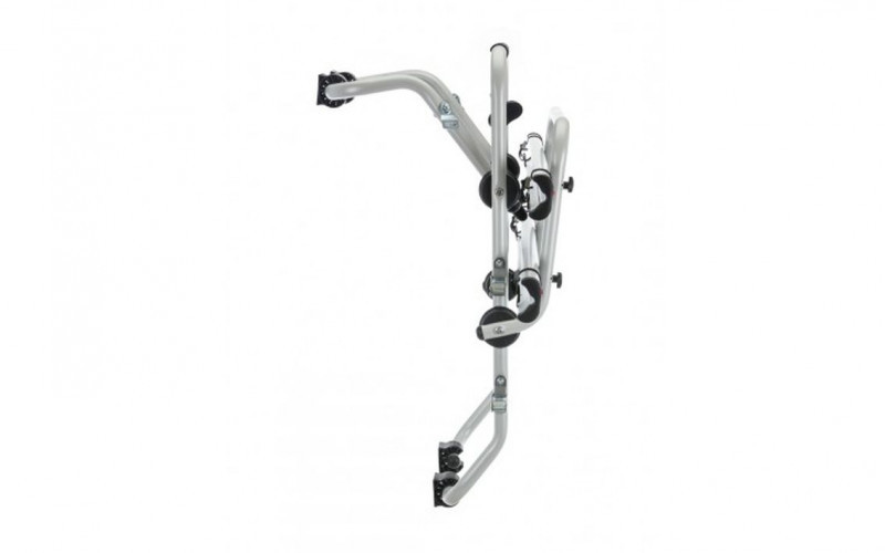 aliuminis, 2 dviračiams 28", max pakrova 2 x 15 kg, dvigubi viršutiniai ir apatiniai diržai neleidžia laikikliui šokinėti, visi diržai atlaiko 250 kg, visi kabliai atlaiko 350 kg, lengvai ir greitai surenkamas, 7.7 kg