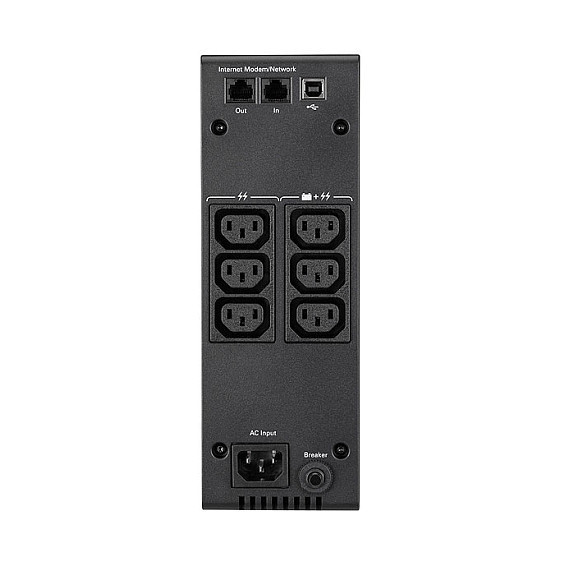 "Eaton 5S 700i. Output power capacity: 0.7 kVA, Output power: 420 W, Input operation voltage (min): 175 V. AC outlet types: C13 coupler, Power plug: C14 coupler, AC outlets quantity: 6 AC outlet(s). Battery technology: Sealed Lead Acid (VRLA), Typical backup time at half load: 9 min. Form factor: Tower, Product colour: Black. Safety: IEC/EN 62040-1, IEC/EN 62040 -2, CB, CE"\n"The Eaton 5S UPS provides cost-effective line-interactive backup power and voltage regulation for small and medium businesses with workstations, desktop PCs, telephone equipment and POS applications. With its compact form factor, the 5S UPS can be utilized as a standalone tower or under a computer monitor."