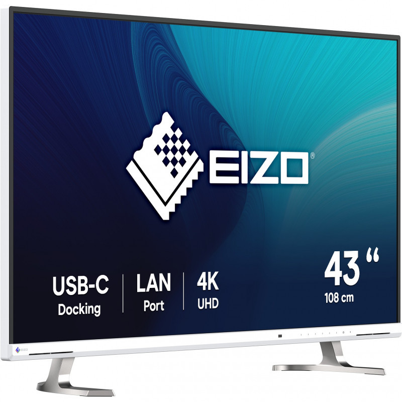 "EIZO FlexScan EV4340X-WT. Display diagonal: 108 cm (42.5""), Display resolution: 3840 x 2160 pixels, HD type: 4K Ultra HD, Display technology: LED, Response time: 5 ms, Native aspect ratio: 16:9, Viewing angle, horizontal: 178°, Viewing angle, vertical: 178°. Built-in speaker(s). Built-in USB hub. VESA mounting. Product colour: White"\n"With a 42.5 inch screen diagonal, the EIZO FlexScan EV4340X is ideal for use in control rooms, control centers, trading floors or similar work environments: Its 4K resolution (3840 x 2160 pixels) offers four times as much information as a Full HD monitor. In addition to two HDMI inputs and a DisplayPort connection, the monitor has full USB-C docking functionality including DisplayPort Alt Mode, transmission of video, audio and USB data signals and a power supply of up to 94 watts. The EV4340X also masters operation with multiple computers or image sources with ease. The integrated KVM switch allows the use of a keyboard and mouse combination on two computers. Thanks to its picture-in-picture (PbP) function, the monitor can display up to four video signals side by side. The button on the front can be used to conveniently switch between 12 available layouts. The picture-in-picture (PiP) function for two signal sources offers efficient screen utilization for presentations and meetings. These and other important functions can be controlled on the monitor or via the supplied remote control. Therefore, the EIZO FlexScan EV4340X is also well suited for wall mounting when buttons on the device are not accessible. Its slim design makes grouping in multi-screen systems particularly easy.