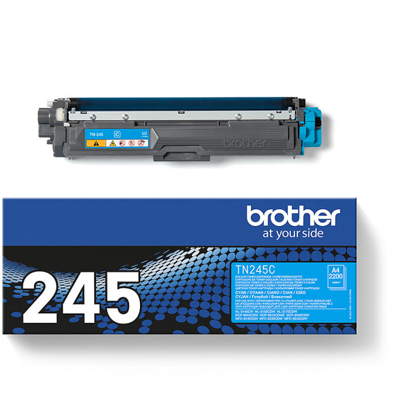 "Brother TN-245C. Colour toner page yield: 2200 pages, Printing colours: Cyan, Quantity per pack: 1 pc(s)"\n"Brother consider the environmental impact at every stage of your ink cartridge life cycle, reducing waste at landfill. All our hardware and toner cartridges are built to have as little impact on the environment as possible. Genuine Brother TN-245C high yield Laser toner cartridge - worth it every time."