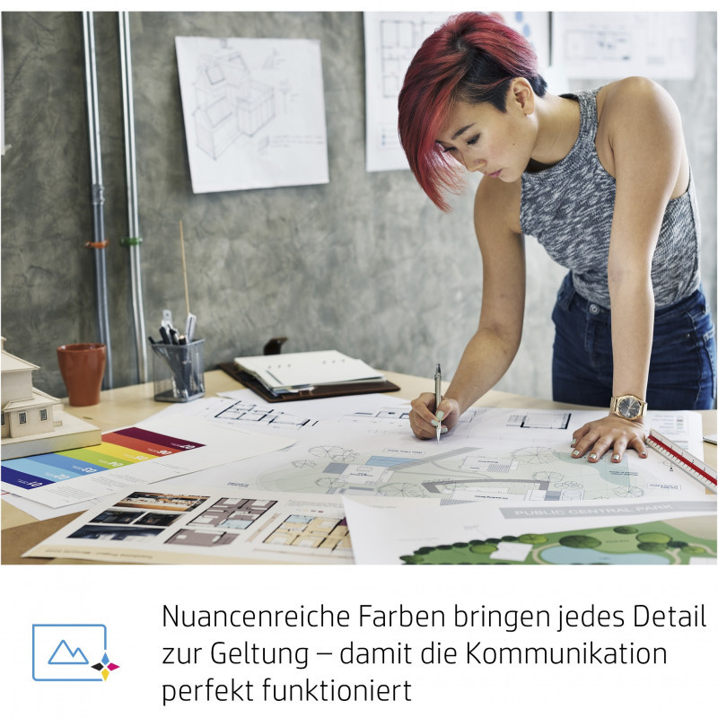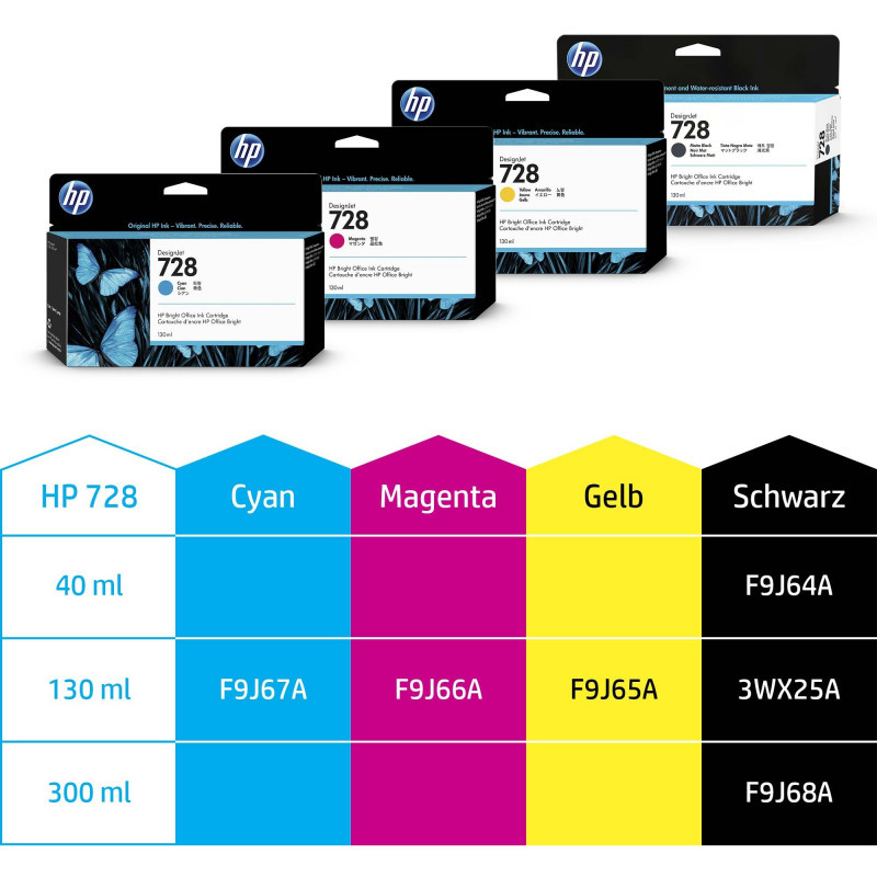 It's easy to get crisp, clear results. Designed together with your HP DesignJet printer/MFP as an optimized printing system, Original HP inks can help reduce downtime, improve productivity. Choose from 40- to 300-ml cartridge sizes to fit your needs."
