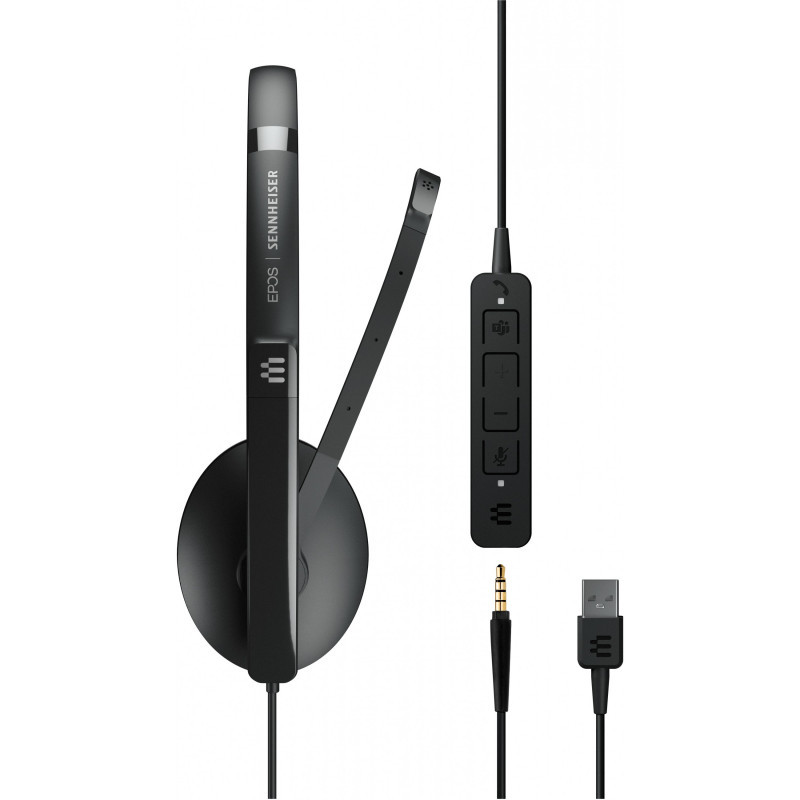 "EPOS ADAPT 135T USB II. Product type: Headset. Connectivity technology: Wired. Recommended usage: Office/Call center. Headphone frequency: 20 - 20000 Hz. Cable length: 2.317 m. Weight: 107 g. Product colour: Black"\n"Wired, single-sided headset with 3.5 mm jack USB connectivity, Microsoft Teams certified and optimized for UC. Work your way with a stylish, comfortable headset designed for the demands of today’s hybrid workplace with superior sound. Enjoy an audio tool that adapts seamlessly in the office, on-the-go, or while working remotely. Experience flexibility and comfort, with a discreet boom arm design that folds neatly away into the headband and plug and play device connectivity.