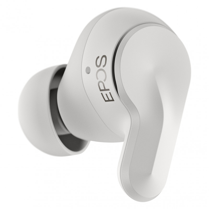 "EPOS ADAPT E1. Product type: Headset. Connectivity technology: True Wireless Stereo (TWS), Bluetooth. Recommended usage: Business/Everyday. Weight: 11 g. Product colour: White"\n"An all-in-one earbud designed for the professional and personal you. Whether you are joining a Teams meeting, taking a call, or enjoying music, the ADAPT E1 delivers an exceptional experience wherever you are. With Microsoft Teams and Made for iPhone certifications, multi-point connectivity and an impressive 50-hour battery life you will experience seamless calls and communication throughout your day. Leveraging AI and a database of over half a million ear scans, EPOS IntelligentFit™ guarantees unmatched comfort and acoustic performance without the feeling of blocked ears. Experience exceptional sound that makes your music come alive and hybrid active noise cancellation that makes concentration effortless. Whether you need to navigate a busy day of calls or want to immerse yourself in music with rich sound, the ADAPT E1 is your new go-to earbud."