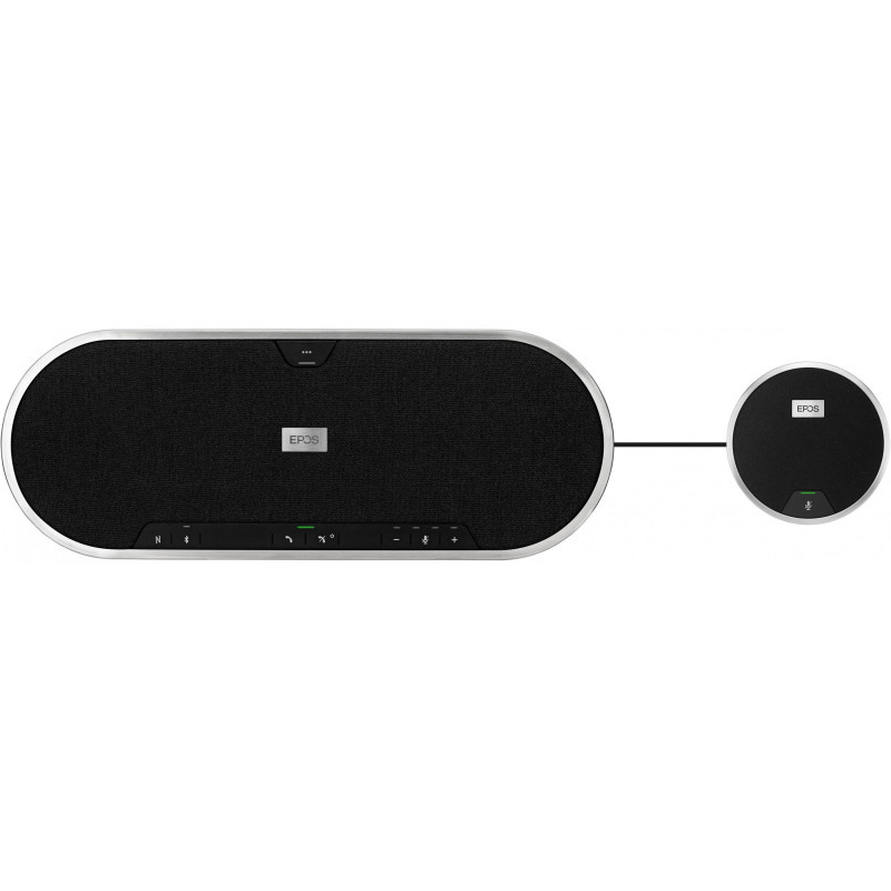 "EPOS EXPAND 80, Bluetooth® Speakerphone. Device type: Universal, Product colour: Black, Silver, Maximum operating distance: 30 m. Frequency range: 50 - 20000 Hz. Microphone frequency: 150 - 7500 Hz, Microphone direction type: Omnidirectional. Connectivity technology: Wireless, Interface: USB/Bluetooth, Bluetooth profiles: A2DP, AVCTP, AVDTP, AVRCP, DID, GAVDP, HFP, HSP. Width: 118.6 mm, Depth: 315.6 mm, Height: 46.1 mm"\n"Unite colleagues with a premium, scalable Bluetooth® speakerphone for up to 16 in-room participants. Be heard thanks to six adaptive, beamforming microphones that isolate voices from room reverb and ambient noise. A superior speaker for rich, natural sound.