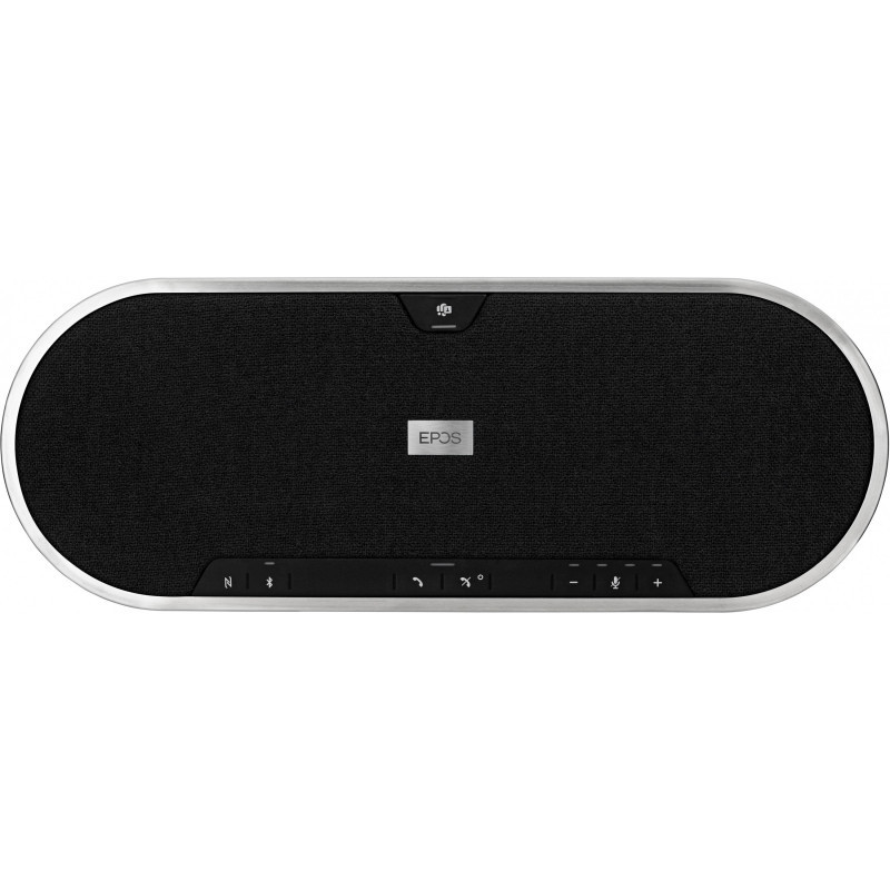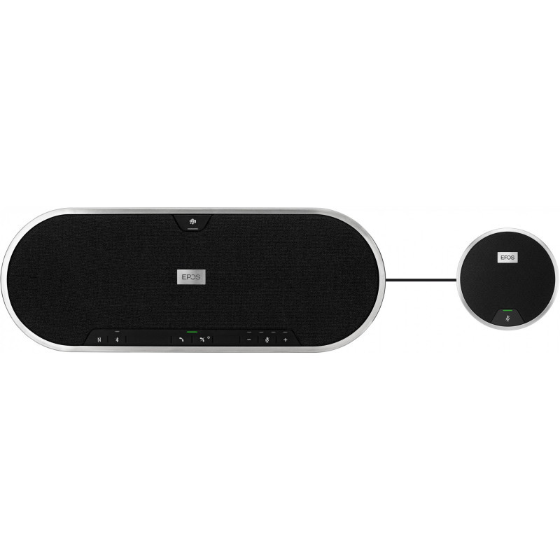 "EPOS EXPAND 80T. Device type: Universal, Product colour: Black, Silver, Maximum operating distance: 30 m. Frequency range: 50 - 20000 Hz. Microphone frequency: 150 - 7500 Hz, Microphone direction type: Omnidirectional. Connectivity technology: Wireless, Interface: USB/Bluetooth, Bluetooth profiles: A2DP, AVCTP, AVDTP, AVRCP, DID, GAVDP, HFP, HSP. Width: 118.6 mm, Depth: 315.6 mm, Height: 46.1 mm"\n"Unite colleagues with a premium, scalable Bluetooth® speakerphone for up to 7 in-room participants. Be heard with six adaptive, beamforming microphones that isolate voices from room reverb and ambient noise. A superior speaker for rich, natural sound."