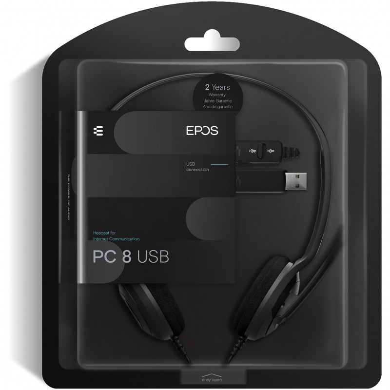 "Sennheiser PC 8 USB. Product type: Headset. Connectivity technology: Wired. Recommended usage: Office/Call center. Headphone frequency: 42 - 17000 Hz. Cable length: 2 m. Weight: 85.05 g. Product colour: Black"\n"The PC 8 USB stereo headset for PC and Mac® gives you control and focus for online calls, whether you are working, studying remotely, or simply staying in touch. An in-line control lets you adjust volume and muting on-device, minimizing interruption to on-screen tasks. Meanwhile, the stereo ear-piece design limits distractions from your immediate surroundings, letting you focus on what matters.