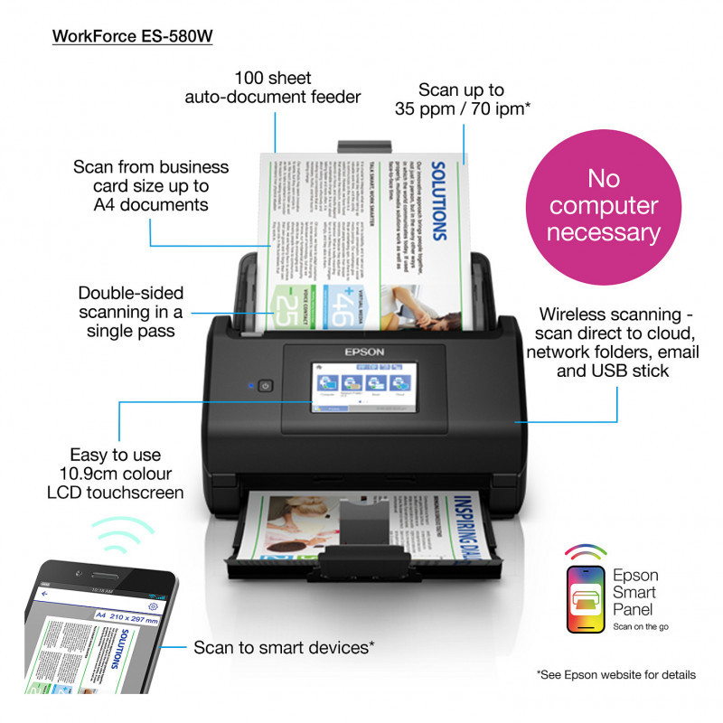 EPSON WorkForce ES-580W DIN A4-Dok.-scanner,35S/M.,ADF 100S.