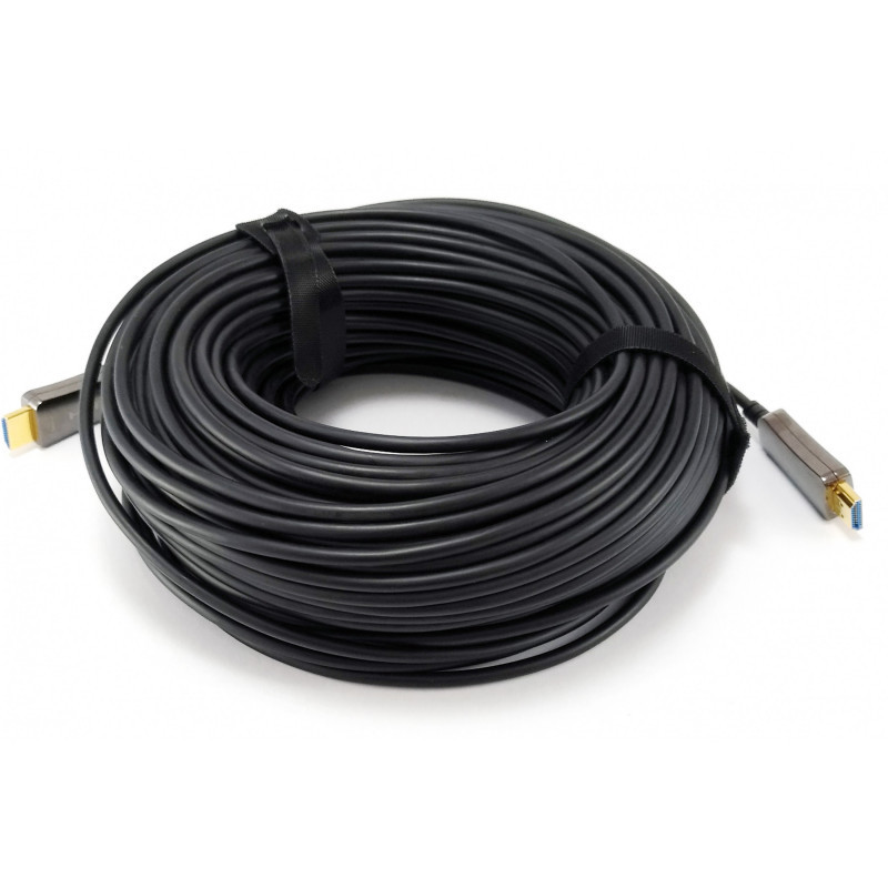 "Equip HDMI 2.0 Active Optical Cable AM/AM, 50m, 4K/60Hz. Cable length: 50 m, Connector 1: HDMI Type A (Standard), Connector 1 gender: Male, Connector 2: HDMI Type A (Standard), Connector 2 gender: Male, Connector contacts plating: Gold, HDMI version: 2.0, 3D, Product colour: Black"\n"The Equip 11943x series Active Optical Cable (AOC) is a cabling technology that accepts the same electrical inputs as a traditional copper cable but uses optical fibre between the connectors to extend HDMI signals with zero loss or latency. Our hybrid cable design consists of optical fibres and copper wires. The high-speed TMDS signals are transmitted through the optical multimode fibres, while the low frequency control signals are transmitted through the copper wires. The range of active optical leads give you up to 100m of distance without a drop of signal quality or the requirement of a separate power supply.